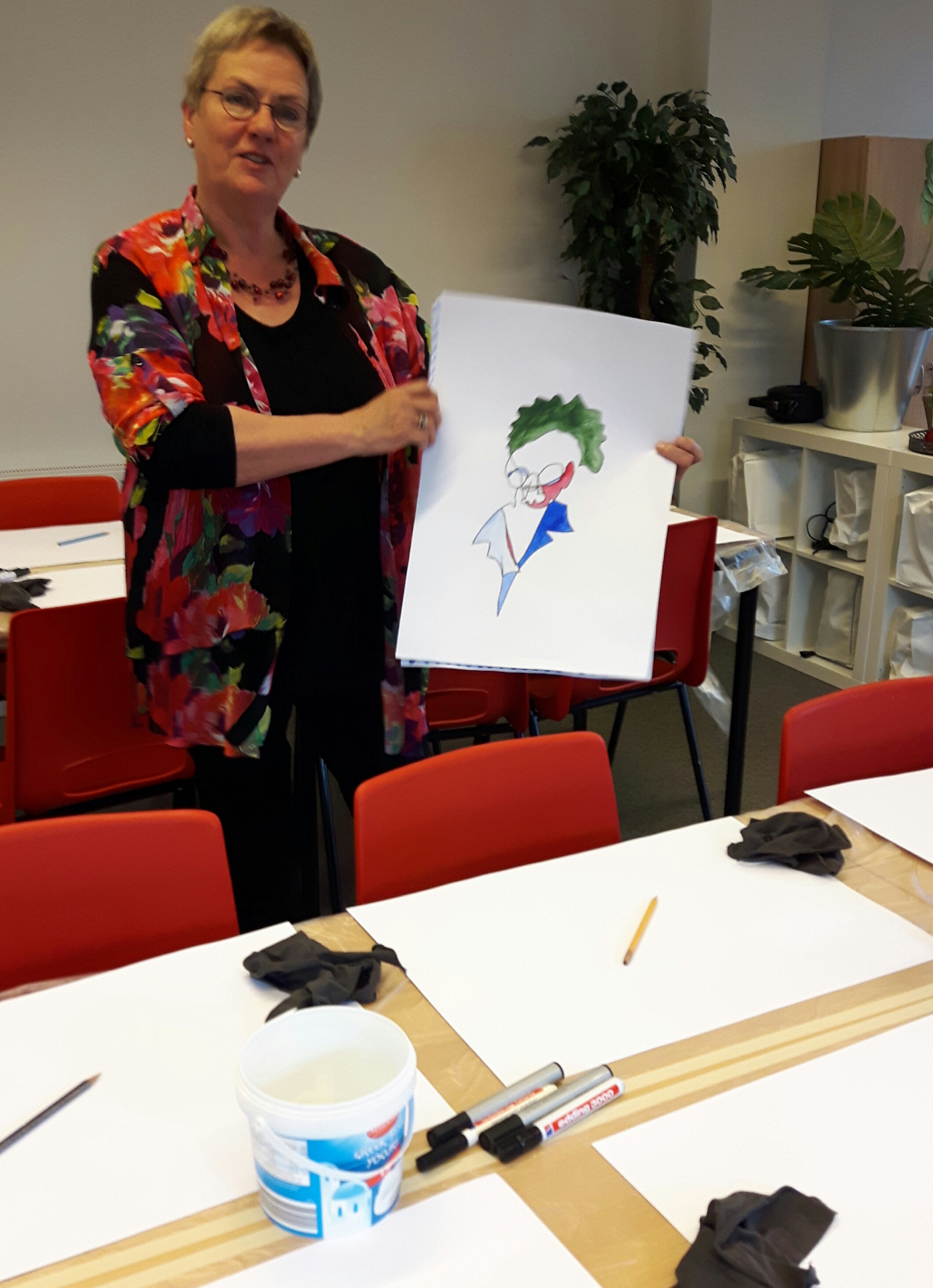 NieuwtjesKunst Kunst op de vloer vandaag Zie docent Tini het materiaal en 2 uit de vele kunstwerken Een inleiding, opdracht en schilderen maar!! Stille vrouwen op kunstreis Leuk hoor! In de hoofdrol Mahera Nieuwsbrief juni 2017