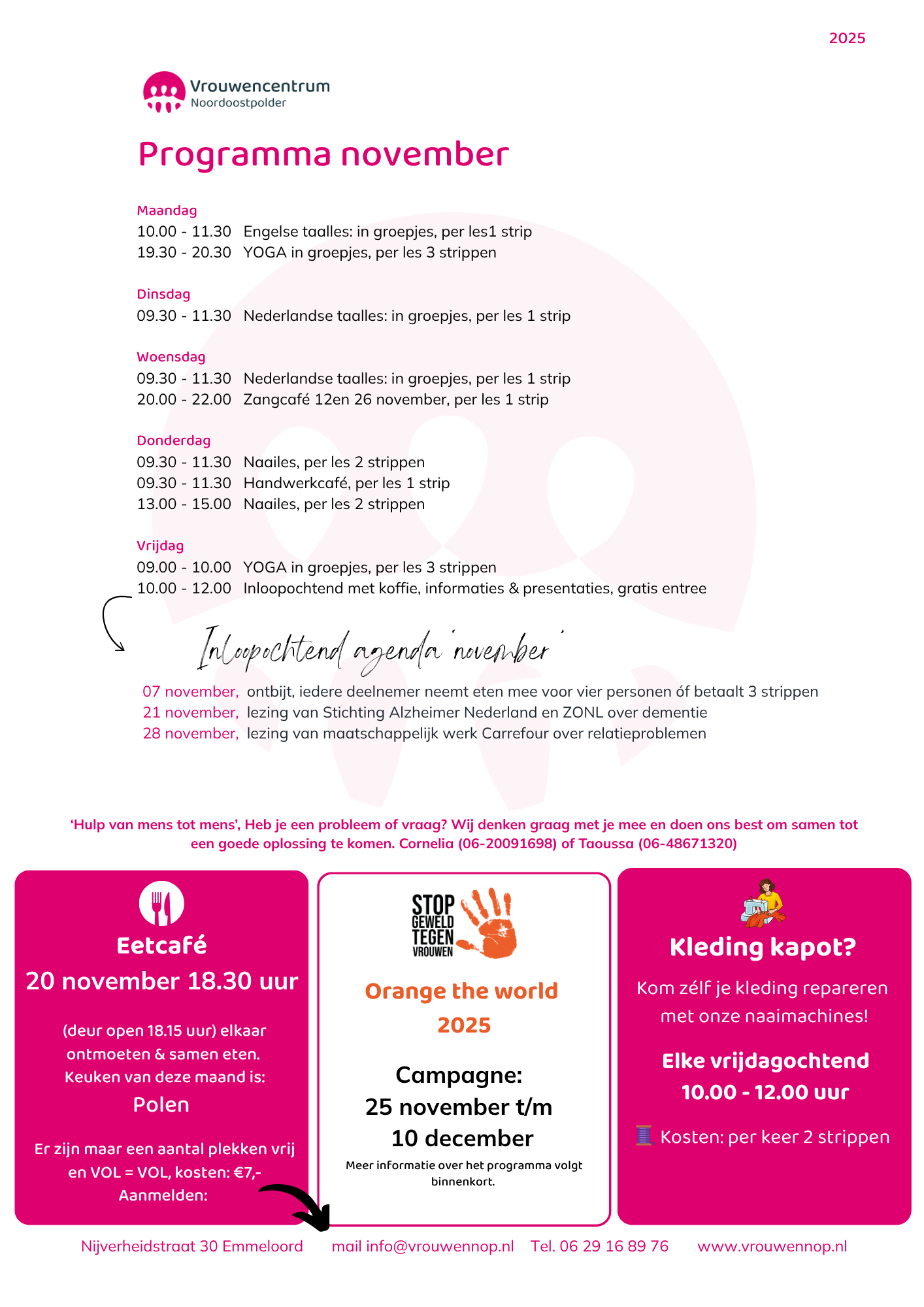 Programma november Vrouwencentrum NOP Gepubliceerd 30 oktober 2025 op 1414 × 2000 in Maand Programma ← Vorige Volgende →